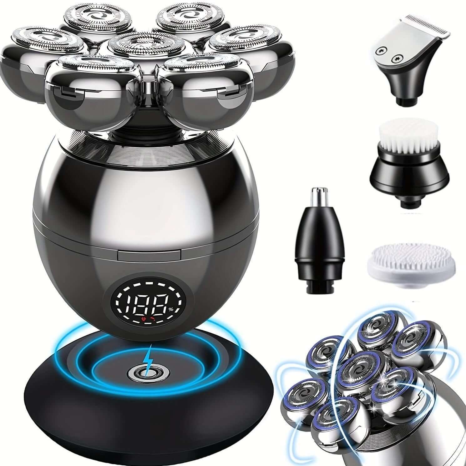 5 IN 1 Razor Head Set:Multifunctional electric head shaver for men with 5 replacement shaver heads: smooth texture,hair trimmer,nose hair trimmer,massage brush,cleaning brush. We suggest change the replacement head every 3 to 6 months for better daily use. Our head shaver for bald men is so powerful that can meet your daily needs. Exquisite head shaver grooming kit is the best choice for a fast and smooth shave. Also the perfect birthday and holiday gift idea for your husband.